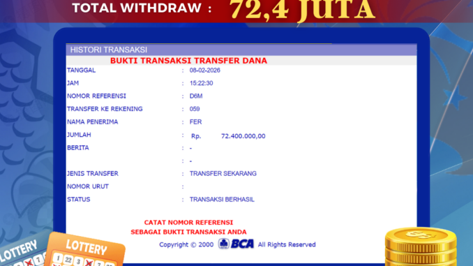 Bukti transfer yang dapat anda lihat adalah bukti SAH / VALID yang langsung di dapatkan melalui bukti transaksi dari Bank yang digunakan untuk pengiriman dana pada rekening pemilik user id. Terima kasih kami sampaikan kepada para pengguna setia BOLAGILA yang telah menggunakan situs kami, sebagai Bandar Terpercaya yang pastinya membayar semua kemenangan member hingga lunas. Apakah BOLAGILA PENIPU ? Reputasi “BOLAGILA TERPERCAYA” sudah sangat melekat.